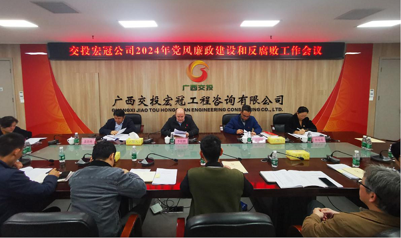 2024年3月4日,廣西交投宏冠工程咨詢有限公司召開2024年黨風廉政建設和反腐敗工作會議,全面總結(jié)公司2023年黨風廉政建設工作,對2024年工作進行布置。公司黨委書記、董事長李俊鵬代表公司黨委在會上作黨風廉政建設和反腐敗工作報告。