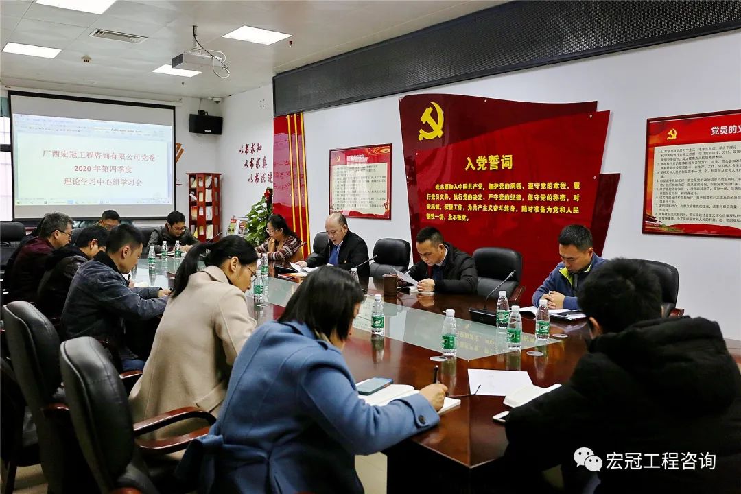 12月9日,廣西宏冠工程咨詢有限公司黨委在公司三樓會(huì)議室召開2020年第四季度理論學(xué)習(xí)中心組學(xué)習(xí)會(huì),公司黨委理論學(xué)習(xí)中心組成員參加會(huì)議。