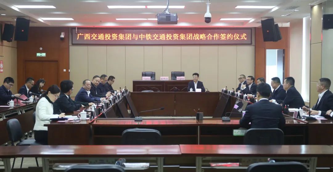 2023年2月22日,廣西交通投資集團(tuán)與中鐵交通投資集團(tuán)在邕簽署戰(zhàn)略合作框架協(xié)議。廣西交通投資集團(tuán)黨委書記、董事長(zhǎng)周文,中鐵交通投資集團(tuán)黨委書記、董事長(zhǎng)譚世俊以及雙方簽約代表約20人出席簽約儀式。