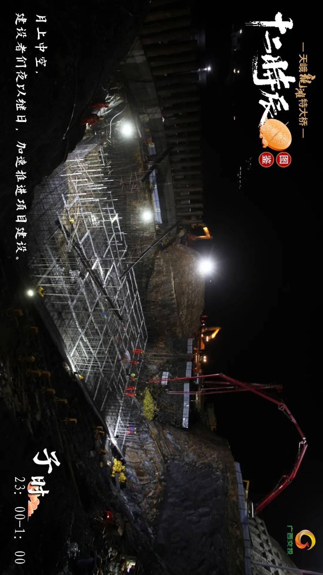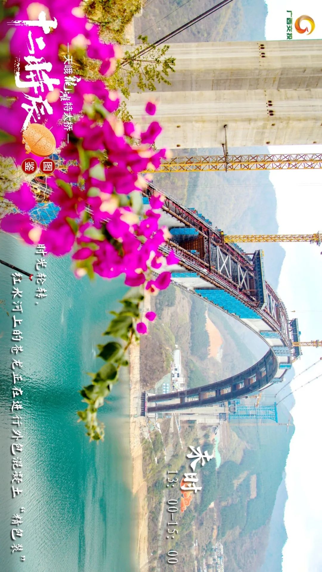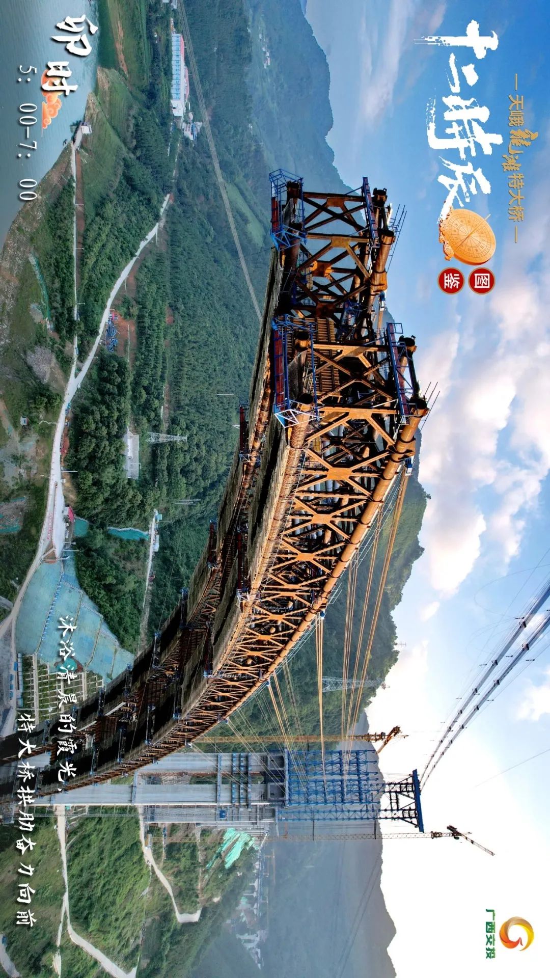 桂西北,紅水河,碧波浩渺。峻嶺之上,由廣西交通投資集團投資建設(shè)的世界最大跨度勁性骨架混凝土拱橋——南丹至天峨下老高速公路天峨龍灘特大橋,飛架云端,氣勢如虹。春夏秋冬,日夜輪轉(zhuǎn),歷經(jīng)3年多時光的攻堅建設(shè),天峨龍灘特大橋即將正式建成通車,引領(lǐng)世界拱橋正式邁入600米級時代。今天,請跟隨一線鏡頭,領(lǐng)略時光奔涌下“世界第一拱”的奮進之姿!