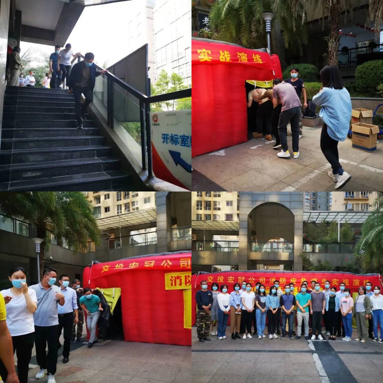 隨后,全體參訓員工在培訓師的組織下,開展了消防應急逃生實戰(zhàn)演練,逃生分兩個環(huán)節(jié),一是模擬在火警情況下,快速從辦公區(qū)域有序撤離至戶外安全地帶。二是通過在“消防逃生體驗屋”內散布煙霧,模擬在火災發(fā)生情況下室內逃生。通過逼真的模擬環(huán)境,讓員工直觀感受火場實況,在體驗中掌握正確的逃生方法。