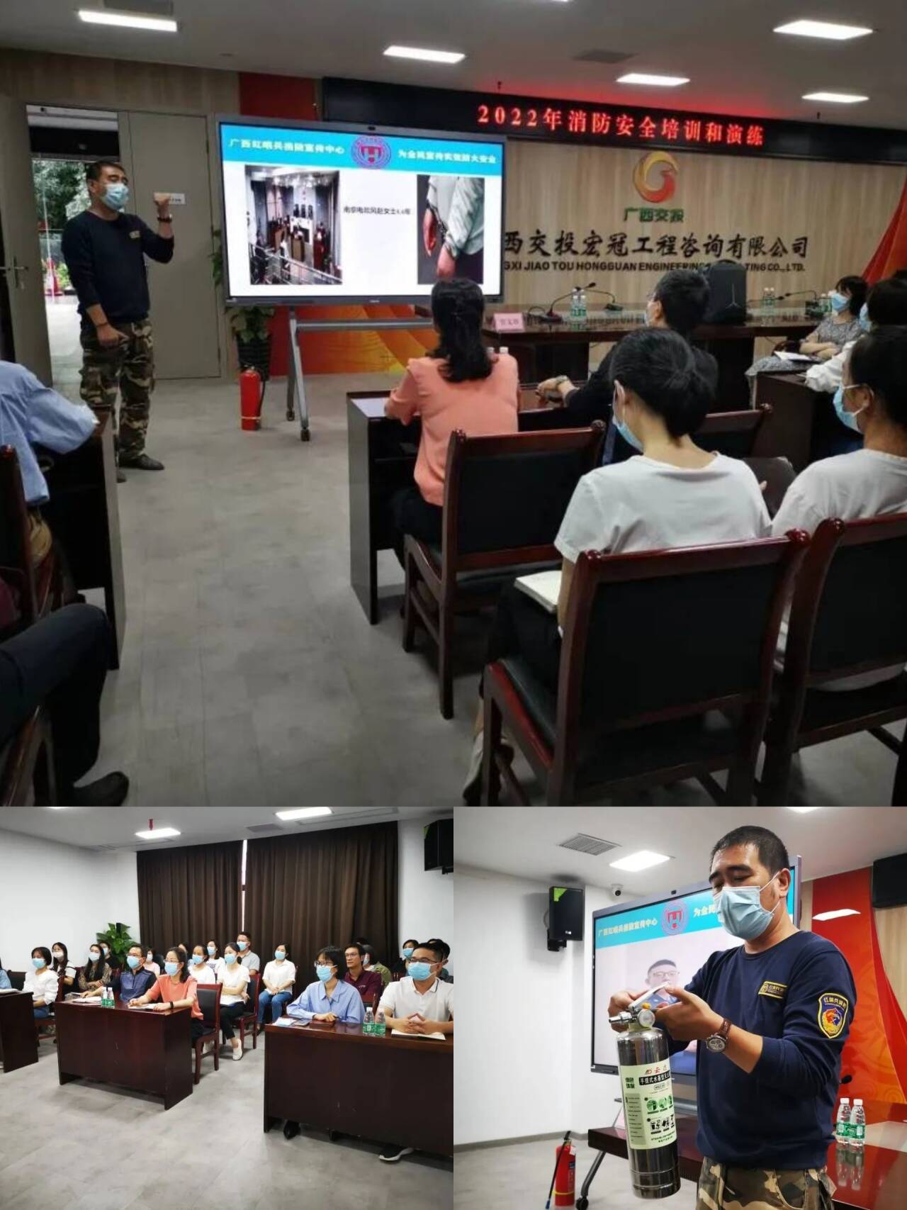 此次培訓和演練邀請到專業(yè)消防安全機構培訓師進行現(xiàn)場授課,講師圍繞新《安全生產法》、習近平總書記關于安全生產的重要論述,“消防安全四個能力”、“常見消防安全隱患”及“遇到火災怎么辦”幾個方面進行了知識宣貫。并結合樓宇建筑火災特點和近期發(fā)生的火災事故案例,向全體參訓員工講解了日常防火事項、車輛防火知識和滅火器等消防應急工具使用方法。
