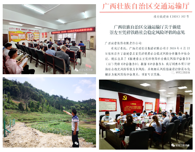 近日,《新建崇左至憑祥鐵路社會穩(wěn)定風(fēng)險分析報告》通過評估主體評估,這是宏冠公司承擔(dān)鐵路穩(wěn)評工作以來獲得的第一份評估意見,標(biāo)志著新建崇左至憑祥鐵路項目向可研審批階段又邁近了一步,為項目年底開工建設(shè)奠定了基礎(chǔ)。