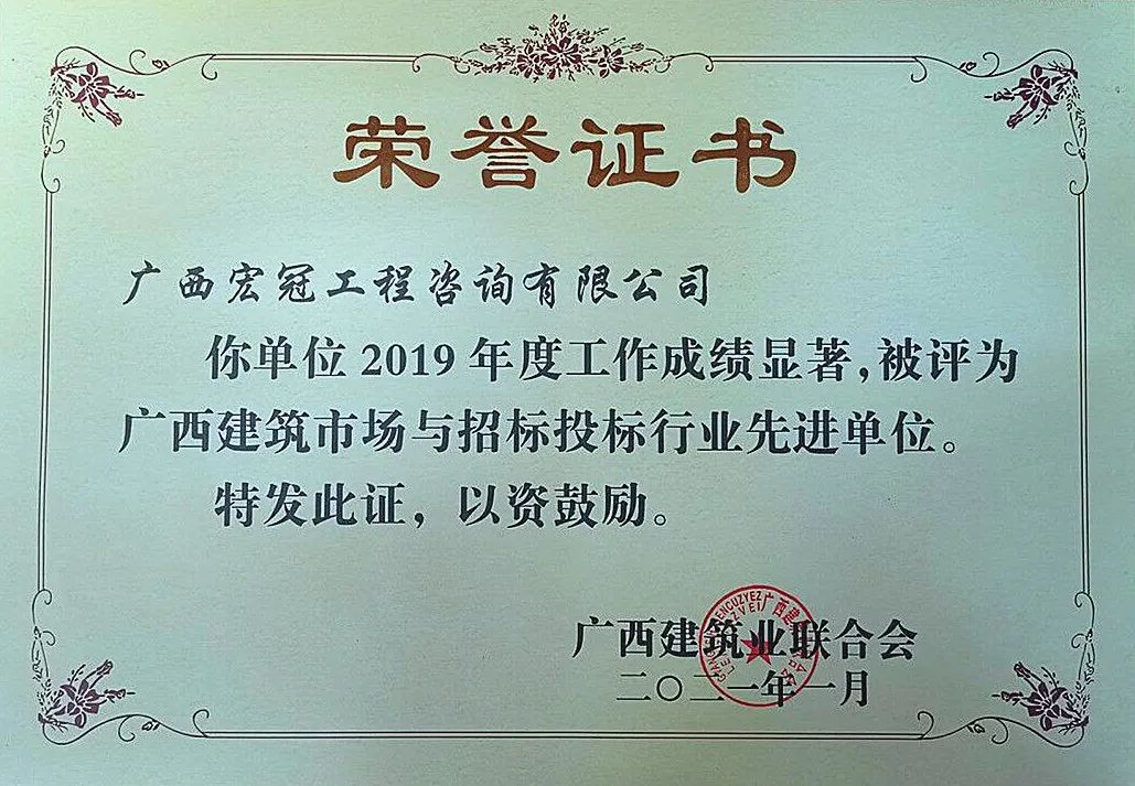 廣西建筑業(yè)聯(lián)合會(huì)是廣西土木、建筑工程勘察、設(shè)計(jì)、施工、科研、教學(xué)以及相關(guān)的企業(yè)、事業(yè)單位自愿聯(lián)合組成的全區(qū)建筑業(yè)行業(yè)性的社會(huì)團(tuán)體,業(yè)務(wù)上受中國建筑業(yè)協(xié)會(huì)、中國施工企業(yè)管理協(xié)會(huì),廣西住建廳和廣西民政廳的指導(dǎo)。公司自加入?yún)f(xié)會(huì)以來,一直遵守協(xié)會(huì)規(guī)章制度,認(rèn)真履行會(huì)員義務(wù),參與行業(yè)問題討論,積極建言獻(xiàn)策,以實(shí)際行動(dòng)承擔(dān)會(huì)員單位的責(zé)任,為行業(yè)健康有序發(fā)展作出應(yīng)有貢獻(xiàn)。此次榮譽(yù)的獲得,也是協(xié)會(huì)對(duì)公司在招投標(biāo)領(lǐng)域取得的成績的肯定。